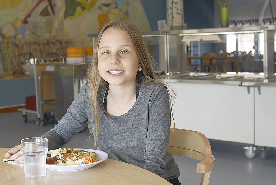 – Jag väljer oftast den vegetariska maten, men om jag är sugen på kött kanske jag smakar av båda, säger Alma Eliasson. Hennes favoritmat är spenatsoppa, även om hon gillar de allra flesta maträtterna.
