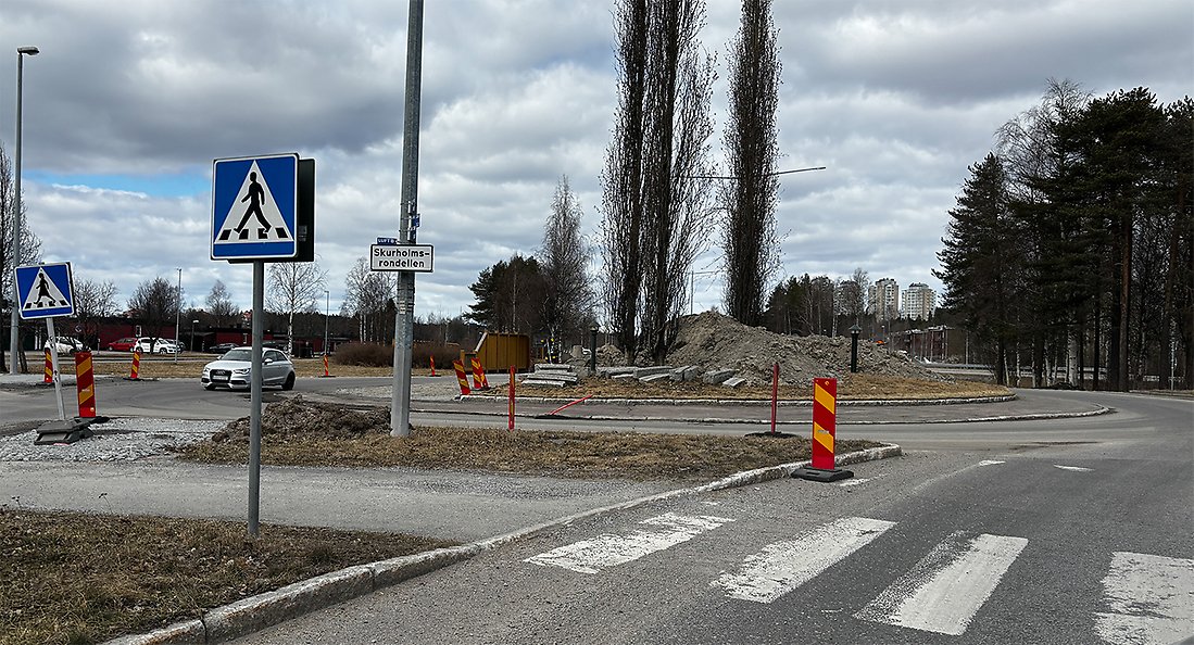 Liknande arbete görs vi övergångstället vid busshållplatserna på nya Brogatan, på västra Skurholmssidan, men då är det renovering av befintlig överfart som gäller.