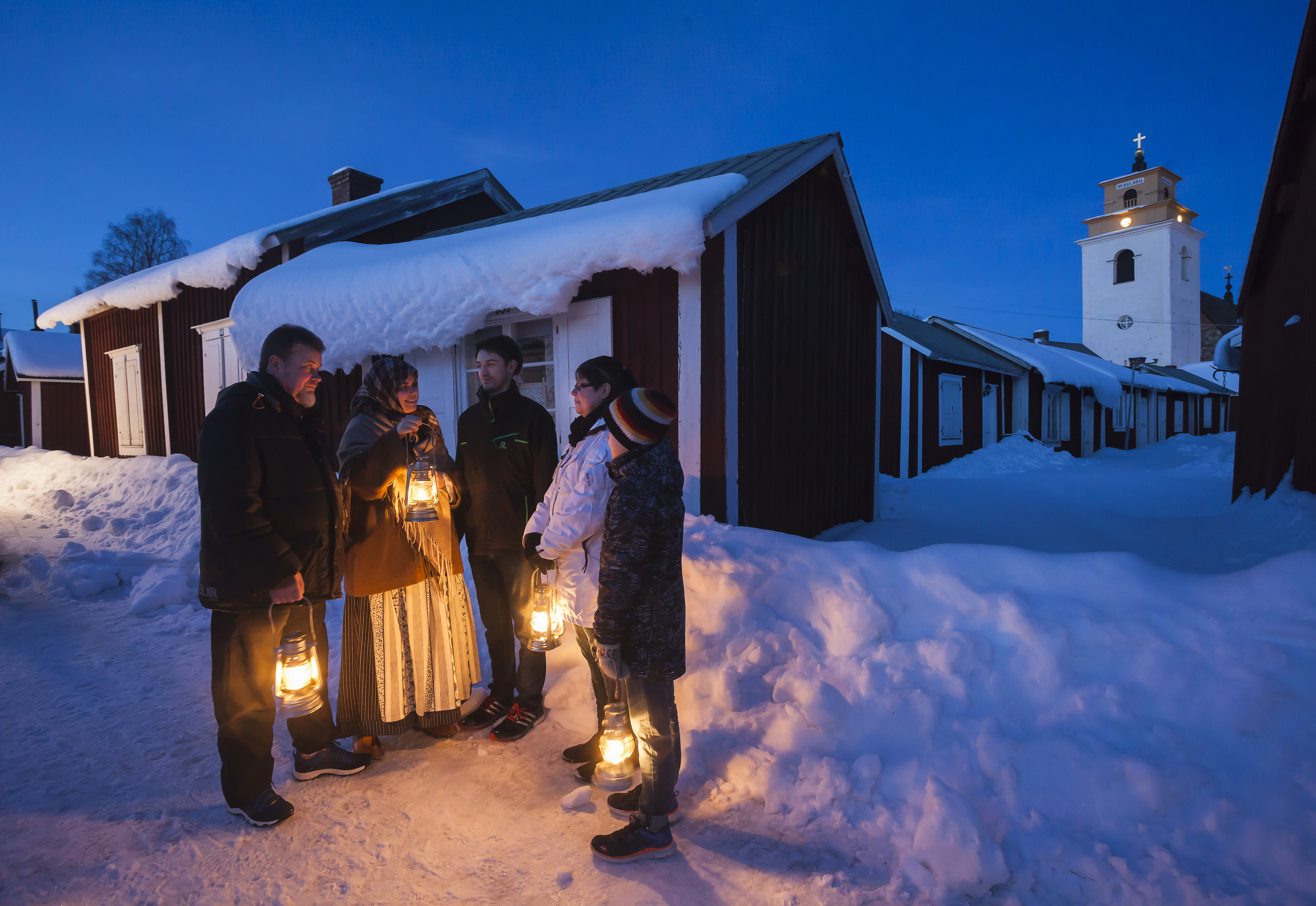 I Kyrkstaden erbjuder Visitor Center stämningsfulla lyktvandringar under marknadshelgen